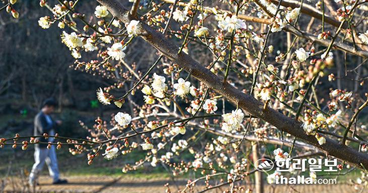 포근한 날씨 1월에 만개한 매화