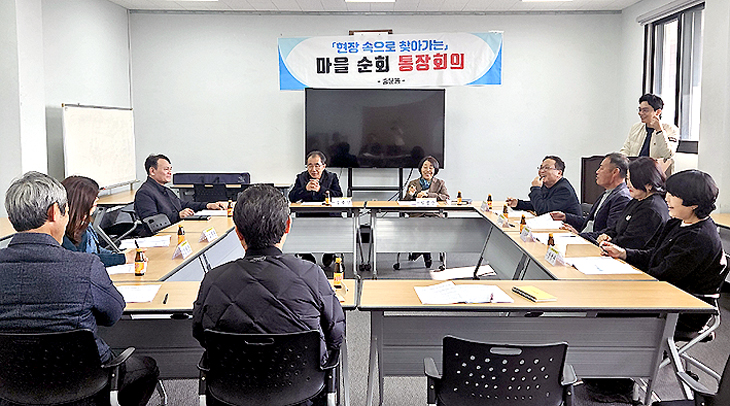 이날 마을회관 기능 보강 사업 등 정책에 대해 안내하고 마을 건의 사항을 논의했다.