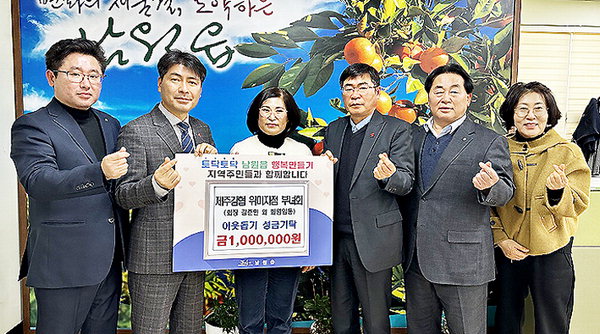 [한라일보] 제주감귤농협 위미지점 부녀회(회장 김춘민)는 지난 20일 서귀포시 남원읍지역사회보장협의체에 지역사회 소외계층을 돕기 위한 이웃돕기 성금 100만원을 기탁했다.