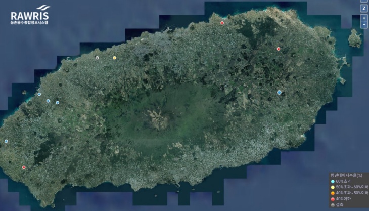 한국농어촌공사가 관리 중인 제주지역의 저수지 저수율 상황. 한국농어촌공사 자료 갈무리