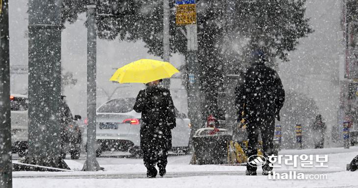 한파 찾아온 제주지방 찬 바람 타고 내일까지 25㎝ 폭설
