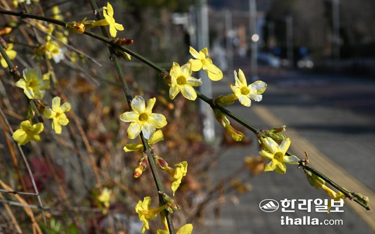 입춘은 멀었는데… 봄 알리는 영춘화 활짝