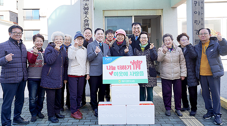 제주양돈농협(조합장 고권진)은 최근 제주사회복지공동모금회(회장 강지언)를 통해 제주시 연동 일대 경로당에 한돈 128㎏을 기탁했다.