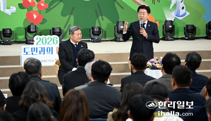이날 제주시청 제1별관 회의실에서 열린 '2026 도민과의 대화'에선 이같은 시민들의 요구가 이어졌다. '지꺼지멍 고찌살게! 함께 만드는 더 큰 제주'를 내걸고 열린 이날 행사는 제주도지사가 매년 초에 행정시를 찾아가는 연례행사로, 제주시에서 먼저 열렸다. 서귀포시에선 오는 2월 3일 서귀포시청 너른마당에서 도민과의 대화가 예정됐다.