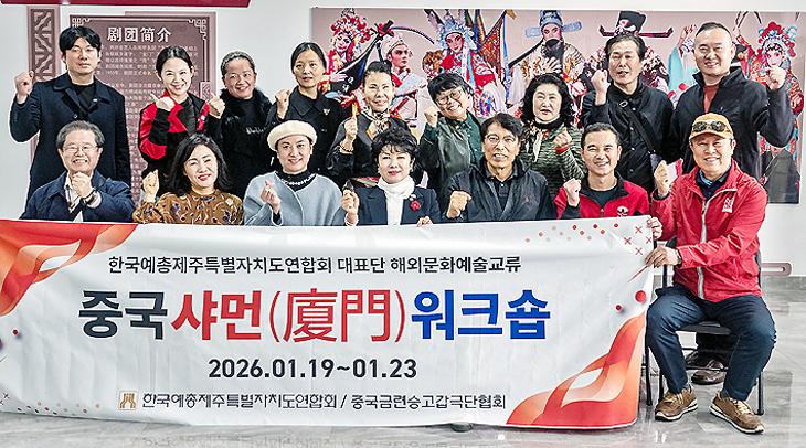 한국예총 제주특별자치도연합회(회장 김선영)는 지난달 20일 중국 샤먼시에서 금련승고갑극단과 예술 교류 워크숍을 열었다.