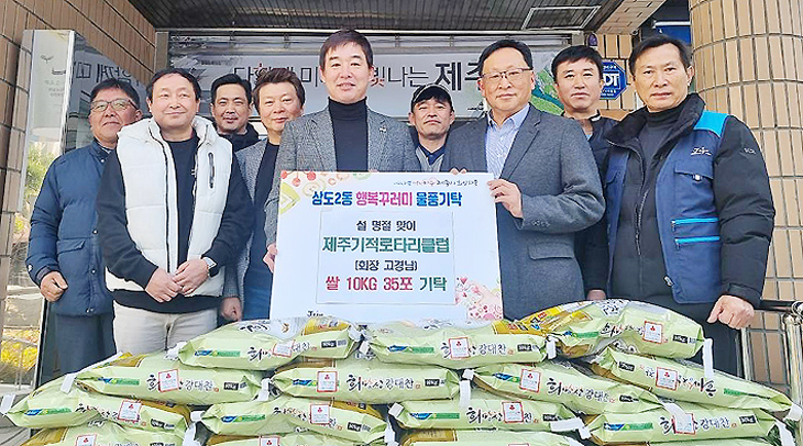 국제로터리3662지구 제주기적로타리클럽(회장 고경남)은 지난달 29일 쌀 10㎏ 35포대를 제주시 삼도2동 주민센터(동장 문석훈)에 기탁했다. 쌀은 홀로사는 노인, 한부모가정, 저소득층에 전달될 예정이다.