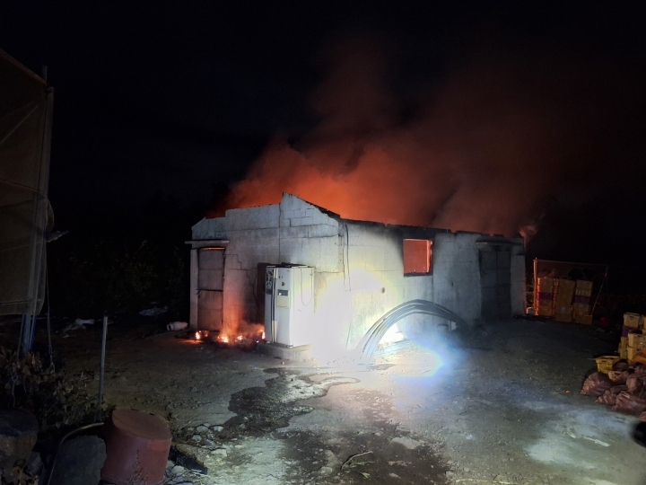 3일 새벽 2시 3분쯤 제주시 한경면 청수리의 한 창고에서 화재가 발생해 소방당국이 진압에 나섰다. 제주소방안전본부 제공