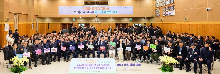 제주도는 3일 오전 서귀포시 별관 너른마당에서 시민 200여 명이 참석한 가운데 '2026 도민과의 대화'를 진행했다.