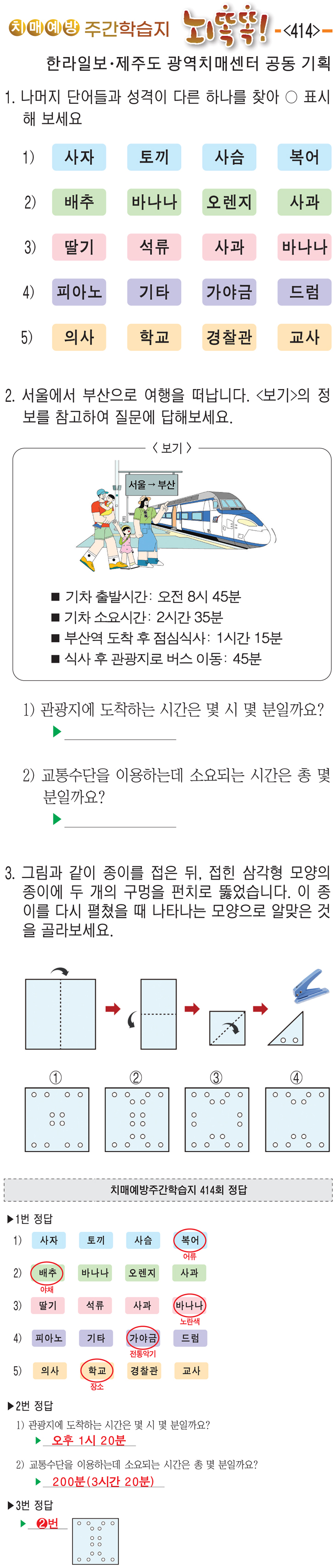 [치매예방주간학습지 뇌똑똑] (414)