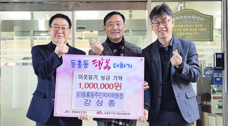 강상종 전 서귀포시 동홍동주민자치위원장은 지난 2일 동홍동 주민센터(동장 김철식)를 방문해 이웃돕기 성금 100만원을 기부했다.