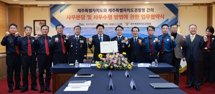 오영훈 제주지사는 "제주가 만들어 온 사무분담과 자치경찰 영역 확대 경험이 국가 차원의 자치경찰제 이원화 모델과 기준이 될 수 있다"며 "이번 협약을 계기로 자치경찰제가 전면 도입되고, 제주가 걸어온 자치경찰의 길이 다시 한번 빛나기를 기대한다"고 말했다.