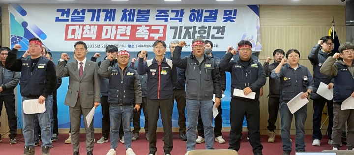 건설산업연맹 전국건설노동조합 제주건설기계지부(이하 노조)는 5일 오전 제주도의회 도민카페에서 기자회견을 열고 “건설기계 임대료 체불, 원청 건설사는 책임을 다하고 정부는 관리감독을 철저히 하라”고 촉구했다.