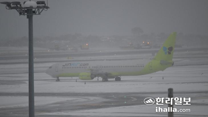 이로인해 제주공항이 항공기 이동지역 제설작업을 위해 활주로 운영이 이날 오전까지 중지되면서 항공기 운항도 전면 중단되고 있다. 출·도착 40여편이 결항된 상황으로 관광객들의 큰 불편이 예상된다.