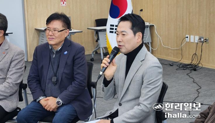 장동혁 국민의힘 대표(오른쪽)는 지난 6일 서귀포시 성산읍을 방문해 주민간담회를 개최했다. 한라일보 자료사진