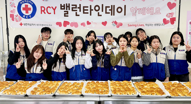 이날 RCY 회원들은 밸런타인데이를 맞아 이웃에게 사랑과 정을 전하고자 소금빵 160개를 직접 만들어 제주시 삼도다함께돌봄센터와 조천지역아동센터에 전달했다.