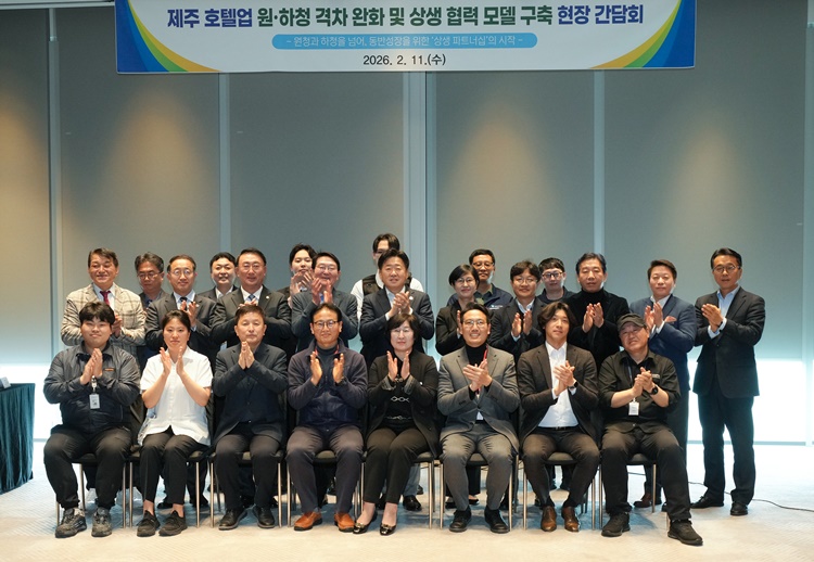 오영훈 지사는 간담회에서 "이번 사업이 도내 임금 격차 해소와 근로 여건 개선의 실질적인 전환점이 되길 바란다"며 "공공이 나서 관광서비스업 원·하청 협력 모델을 만드는 첫 사례인 만큼 노사가 합심해 현장의 목소리를 적극 반영해달라"고 당부했다.