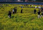 설 연휴인 지난 15일 서귀포시 성산일출봉 진입로변 유채밭을 찾은 관광객들이 사진을 찍으며 즐거운 시간을 보내고 있다. 강희만기자