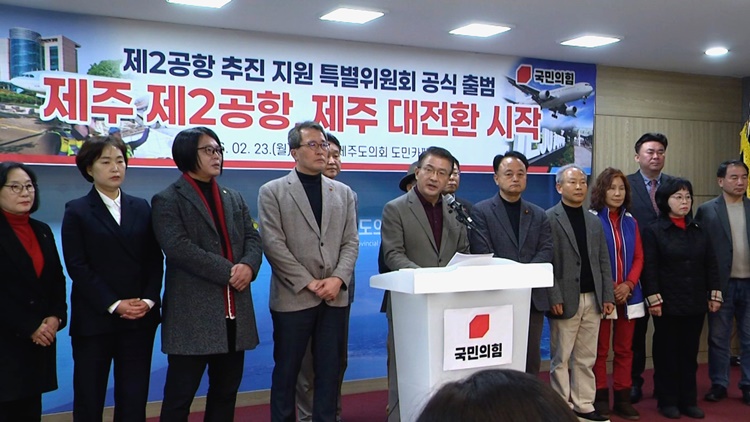 국민의힘 제주도당은 23일 제주도의회 도민카페에서 기자회견을 열고 "국민의힘 중앙당에서 이종욱 국회의원이 위원장, 고기철 제주도당위원장이 부위원장을 맡은 제주 제2공항 추진지원 특별위원회가 공식 출범했다"고 밝혔다.