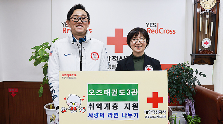 제주시 아라동에 위치한 오즈태권도 3관(관장 신수호)은 최근 지역 내 취약계층 지원을 위해 라면을 모아 대한적십자사 제주도지사(회장 정태근)에 기부했다.