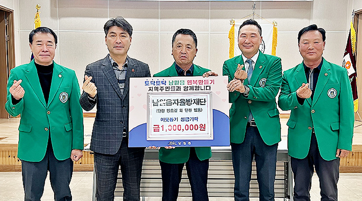 서귀포시 남원읍자율방재단(단장 양홍길)은 지난 19일 관내 어려운 이웃돕기에 사용해 달라며 성금 100만원을 남원읍에 기탁했다.