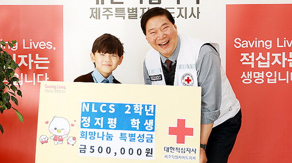 [한라일보] 정지평 학생(NLCS Jeju 2학년)은 지난 19일 대한적십자사 제주특별자치도지사(회장 정태근)를 방문해 1년 동안 모은 용돈 50만원을 기부했다.