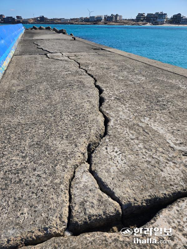 제주시 구좌읍 월정항 인근 포구에서 바닥 균열이 발생했다. 양유리기자