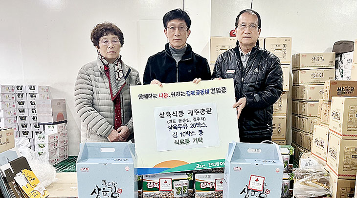 삼육식품 제주총판(대표 윤봉실·김추자)은 24일 제주시 건입동 내 취약계층 지원을 위해 총 40만원 상당의 두유 20박스와 김 세트 10개를 건입동주민센터에 기탁했다.