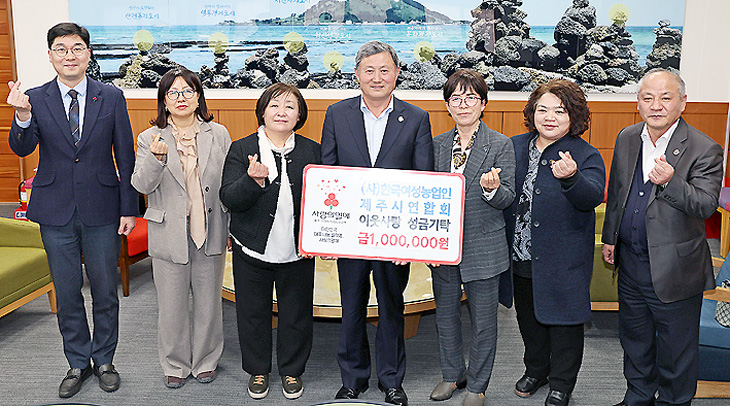 (사)한국여성농업인 제주시연합회(회장 강용희)는 지난 23일 제주시에 이웃돕기 성금 100만원을 기탁했다.
