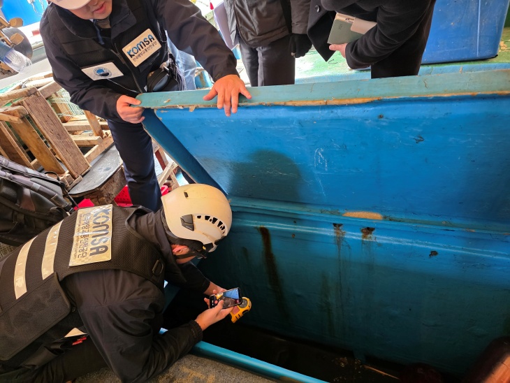 한국해양교통안전공단 제주사고조사센터가 해양수산부 어선원안전감독관과 함께 제주지역 어선 현장 점검을 하고 있다. 한국해양교통안전공단 제주사고조사센터 제공