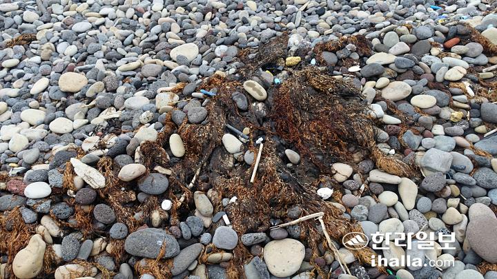26일 오전 제주시 내도동의 알작지 해변에 버려진 해양쓰레기들. 양유리기자