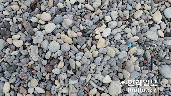 26일 오전 제주시 내도동의 알작지 해변의 몽돌. 크기와 색이 다양해 돌을 무단으로 반출하는 이들이 적지 않다. 양유리기자