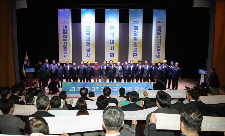 제주도는 의회·교육청을 비롯해 정당·대학·공공기관·자생단체 등 100여 개 기관·단체가 참여한 '2차 공공기관 제주 유치 범도민운동본부'를 구성하고, 26일 설문대여성문화센터에서 출범식을 개최했다.