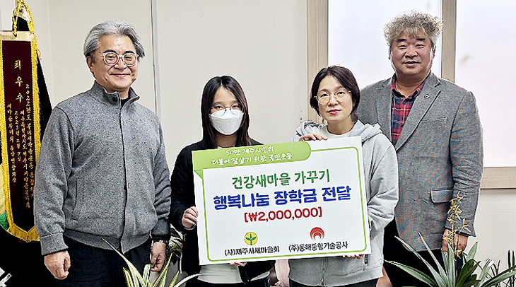 사단법인 제주시새마을회(회장 유철수)는 지난 25일 제주시새마을회 회관에서 건강새마을가꾸기 행복나눔 장학금 200만원을 신성여자중학교 학생에게 전달했다.