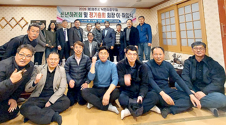 (재)제주시낙천리향우회는 지난달 21일 노형동 도새기샤브마을에서 정기총회 및 회장 이·취임식을 개최했다.