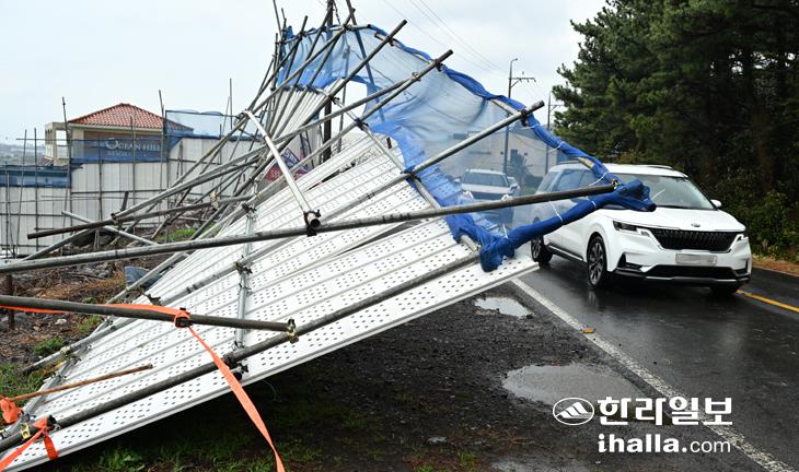 강풍에 무너진 안전막