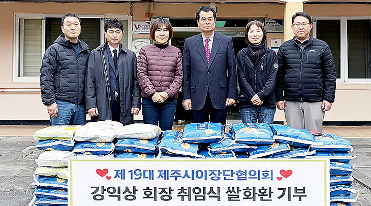 제19대 제주시 이장단협의회장으로 취임한 강익상 회장은 지난달 26일 열린 취임식에서 받은 쌀 화환 140개를 아가의 집과 예천노인전문요양원에 각 70포씩 기부했다. 강 회장은 "앞으로도 협의회가 지역 사랑과 상생의 중심이 될 수 있도록 앞장서겠다"고 말했다.