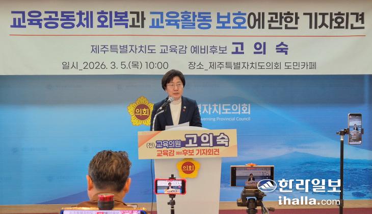 한편 고 예비후보는 지난 4일 교육의원직을 사퇴하고 제주도교육감 선거 예비후보로 등록했다. 오는 6월 3일 치러지는 제주도교육감 선거는 현 김광수 교육감과 고 예비후보, 송문석 예비후보의 3파전 구도를 보이고 있다.