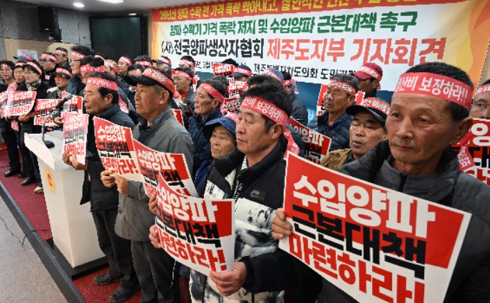 (사)전국양파생산자협회 제주도지부는 회견에서 "국산 양파는 재배면적 감소에도 비료·농자재·인건비 상승으로 생산농가는 한계 상황에 이르렀다"며 "농가가 고품질 양파 생산에 전념할 수 있도록 양파 유통구조 혁신과 수입양파 저지를 위한 근본대책을 세워달라"고 요구했다.