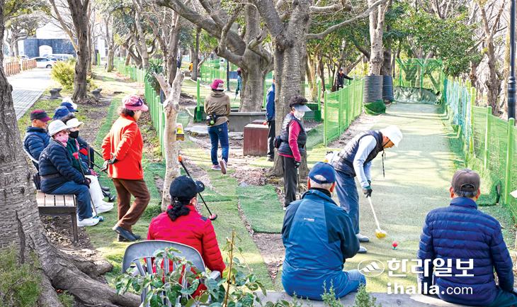 [한라일보] 5일 제주시 종합경기장 인근 파크골프장을 찾은 어르신들이 봄날씨 속 파크골프를 즐기고 있다. 강희만기자