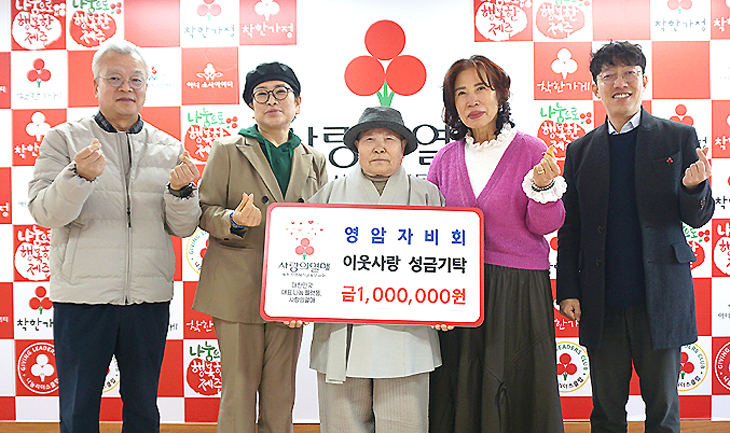 일붕선교종 영암사 영암자비회(주지 제법스님)는 지난 10일 제주사회복지공동모금회(회장 강지언)를 방문해 도내 어려운 이웃을 위해 사용해 달라며 이웃사랑 성금 100만원을 기탁했다.