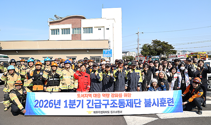 이번 훈련은 도내 최초로 유인도서에서 진행된 긴급구조통제단 가동훈련이다. 우도면 공동이용시설 화재로 다수사상자가 발생한 상황을 가정해 진행됐으며 도서지역 특성에 맞는 초기 대응능력과 유관기관 간 협업체계를 점검하는 데 중점을 뒀다.