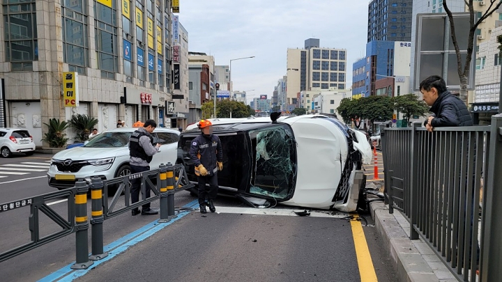 제주 버스전용차로서 렌터카 전도 사고… 20대 …