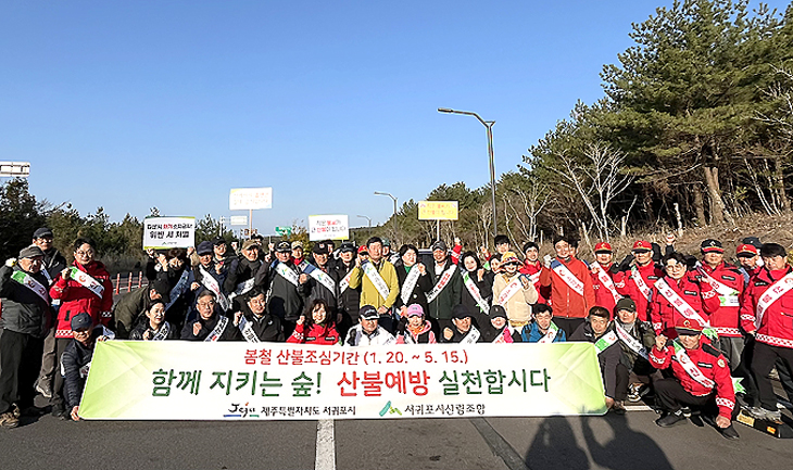 서귀포시산림조합(조합장 오형욱)은 지난 14일 봄철 산불조심기간을 맞아 서귀포 솔오름에서 산림조합 임직원, 자생단체, 서귀포시 관계자 등 50여 명이 참여한 가운데 관광객과 도민들을 대상으로 봄철 산불예방 캠페인을 실시했다.