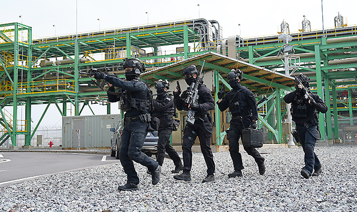 해병대 9여단은 지난 12일 한국가스공사 제주LNG본부에서 군·경·소방 합동 대테러 훈련을 실시했다.