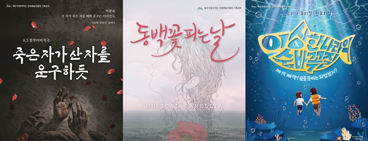 18일 도 문화진흥원에 따르면 '기억의 달 4월' 특별 공연 작품은 4·3 창작 이미지극 '죽은 자가 산 자를 운구하듯', 4·3 소재 창작 뮤지컬 '동백꽃 피는 날', 세월호의 아픔을 은유적으로 그린 어린이 뮤지컬 '이상한 나라의 숨바꼭질'이다. 역량 있는 제작진, 도내외 공연으로 검증된 작품들을 선별했다.