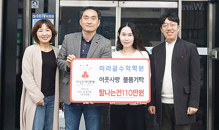 미라클수학학원(원장 오미라)은 지난 18일 제주시 연동주민센터에 지역 내 어려운 이웃을 위한 탐나는전 110만원을 기탁했다.
