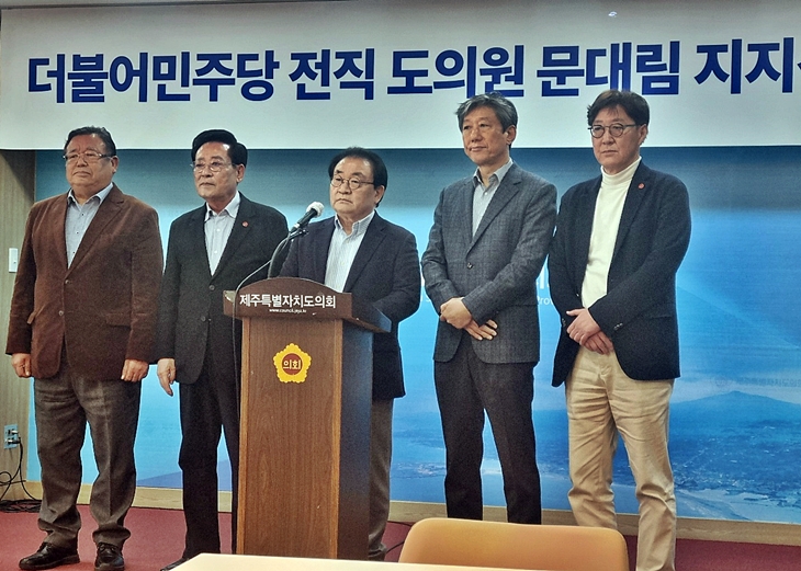 강성균·고태순·김태석·문경운·박규헌·방문추·소원옥·안창남·좌남수·홍기철·홍명환 전 도의원은 이날 제주도의회 도민카페에서 기자회견을 열어 "문 의원만이 이재명 정부와 발 맞춰 도민 주권 지방정부 시대를 열어갈 수 있다"며 문 의원 지지 의사를 밝혔다.
