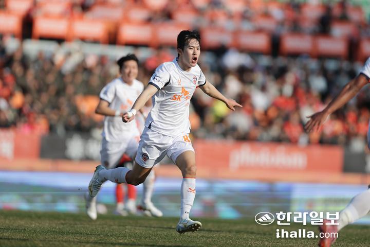 22일 강원과의 경기에서 데뷔골을 넣은 제주 조인정. 한국프로축구연맹 제공