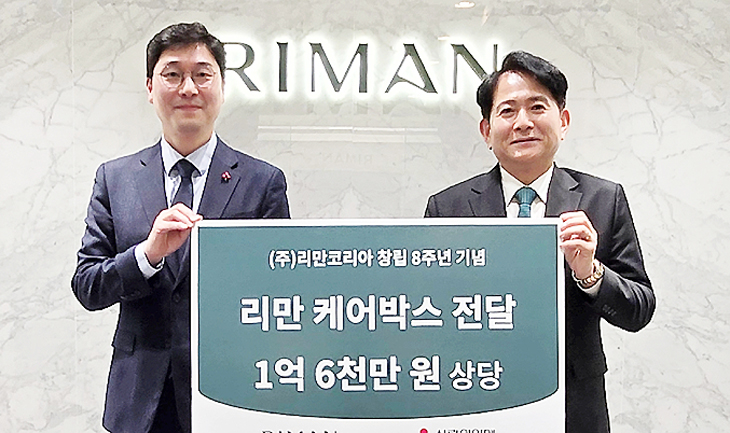 리만코리아(대표 강영재)는 최근 창립 8주년을 기념해 '리만 케어박스' 800세트를 제주사회복지공동모금회(회장 강지언)에 전달했다.