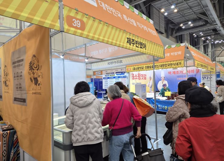 '제12회 대한민국 대표 특산물 박람회'가 26일 부산 벡스코에서 개막해 오는 29일까지 나흘 간 이어지고 있다. 사진은 제주지역 참가 업체. 한국전시산업원 제공